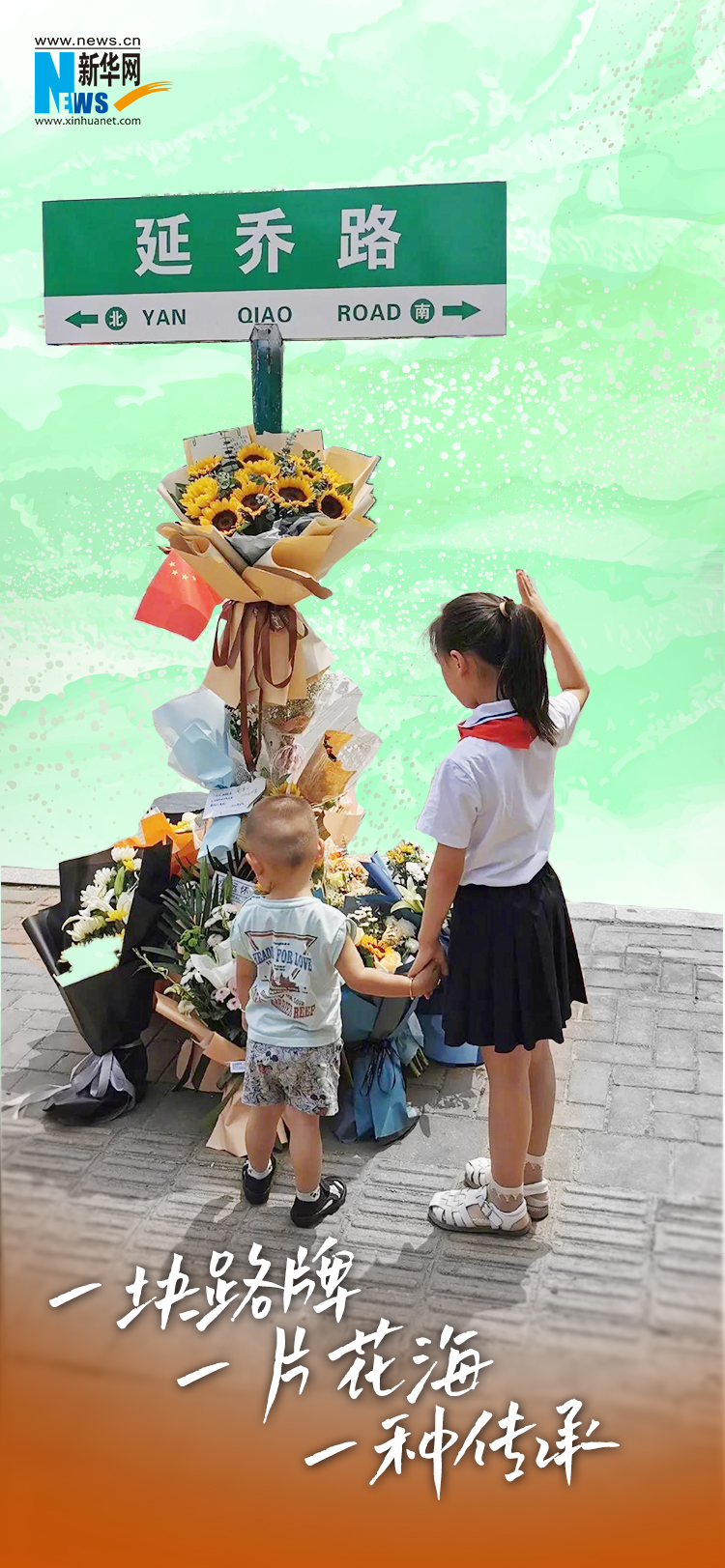 這幾天,這塊路牌成為鮮花環(huán)繞的“紀(jì)念碑”,人們自發(fā)在路牌下插上國旗,擺放鮮花、卡片。