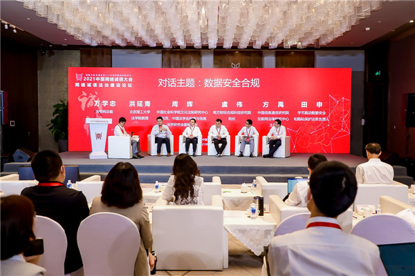 法制網(wǎng)總裁萬學(xué)忠主持論壇“對話環(huán)節(jié)”。北京理工大學(xué)法學(xué)院教授洪延青,中國社會科學(xué)院文化法制研究中心研究員周輝,南方財(cái)經(jīng)合規(guī)科技研究院院長虞偉,中國信息通信研究院互聯(lián)網(wǎng)法律研究中心主任方禹,字節(jié)跳動數(shù)據(jù)安全和隱私保護(hù)法務(wù)負(fù)責(zé)人田申等嘉賓,圍繞“數(shù)據(jù)安全合規(guī)”進(jìn)行對話交流,發(fā)表精彩觀點(diǎn)。