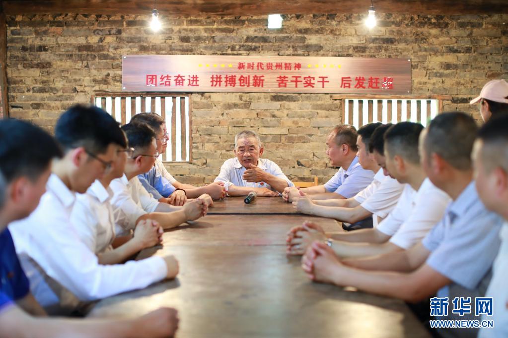 黃大發(fā)為前來參加黨建活動(dòng)的人們講述修渠故事(6月16日攝)。新華社記者 劉續(xù) 攝