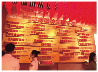 在人民軍隊慶祝中國共產(chǎn)黨成立100周年主題展覽展廳,有一面紅墻格外引人注意,吸引了不少參觀者駐足觀看。