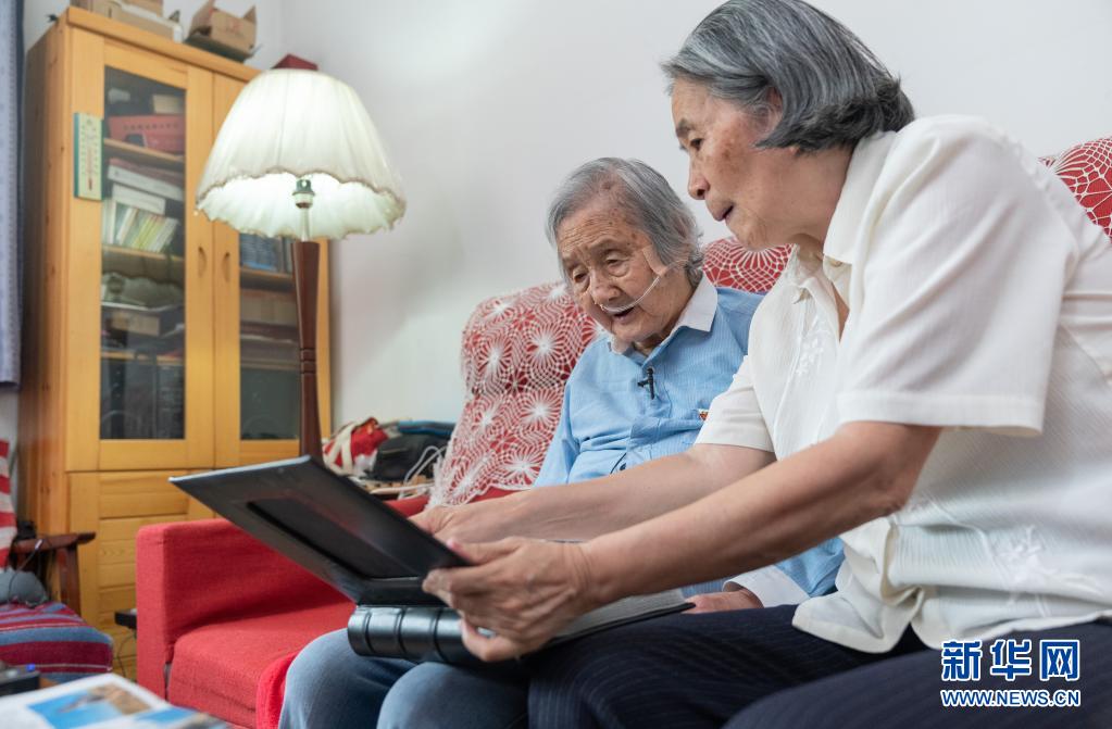 6月23日,在北京的家中,瞿獨(dú)伊(左)和女兒李曉云向記者展示家人的相冊(cè)。新華社記者 才揚(yáng) 攝