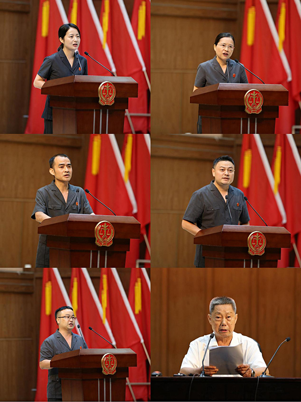 報告會上,5名英模事跡報告團成員作報告。報告團成員有2名是湖南法院英模生前戰(zhàn)友,3名是湖南法院優(yōu)秀法官代表。湖南高院民一庭法官助理龍菲深情追憶湖南高院審監(jiān)一庭原副庭長、“全國模范法官”“全國三八紅旗手”“湖南省優(yōu)秀共產(chǎn)黨員”周春梅同志用生命捍衛(wèi)公平正義的英雄事跡。湖南高院民三庭副庭長陳小珍深情講述了她的同事徐康同志深耕審判業(yè)務(wù),始終躬行為民的感人事跡?!叭珖鴥?yōu)秀法官”、長沙中院民三庭副庭長何豪杰講述了自己遵循“堂堂正正做人,明明白白辦事”的行為準則,求真務(wù)實、依法公正辦案的感人故事?!叭珖鴥?yōu)秀法官”、“全國法院十大亮點人物”、“湖南省優(yōu)秀青年衛(wèi)士”、湘潭縣法院刑事審判庭庭長崔贛講述了自己堅守基層一線、踐行使命擔(dān)當(dāng)、守護一方平安的動人事跡?!叭珖ㄔ喝嗣穹ㄍスぷ飨冗M個人”、“全國法院辦案標兵”、湘西龍山縣人民法院刑事審判庭庭長田代飛以《土家山寨的“喳西呔”》為題講述了自己經(jīng)過不懈努力,讓法律走進老百姓的生活,在每一起案件的公正審判與耐心調(diào)解中,滿足人民群眾對公平正義期待的感人事跡。