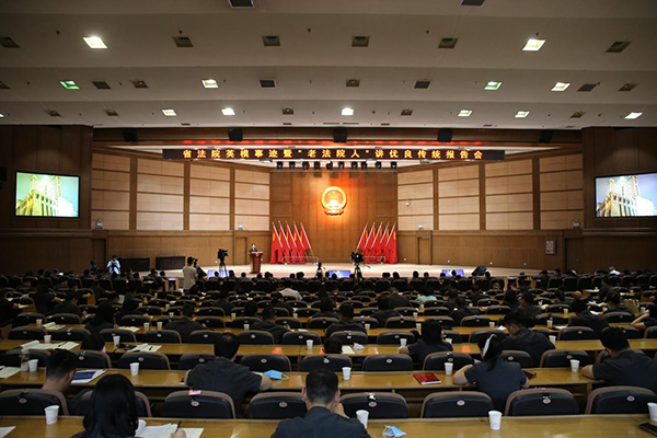 報告會還邀請了“老法院人”代表吳政祥講優(yōu)良傳統(tǒng)。吳政祥以生動的故事、質(zhì)樸的話語講述了他在湖南省法院審判一線不忘初心、牢記使命的奮斗歷程。他勉勵青年干警要樹立遠大理想和抱負,練就健康體魄,珍愛自己的職業(yè)、榮譽和家庭,珍惜國家和人民賦予的審判執(zhí)行權(quán)力,為湖南法院審判執(zhí)行事業(yè)高質(zhì)量發(fā)展貢獻力量,成為忠誠干凈擔(dān)當(dāng)?shù)暮戏ㄔ鸿F軍中的一員。