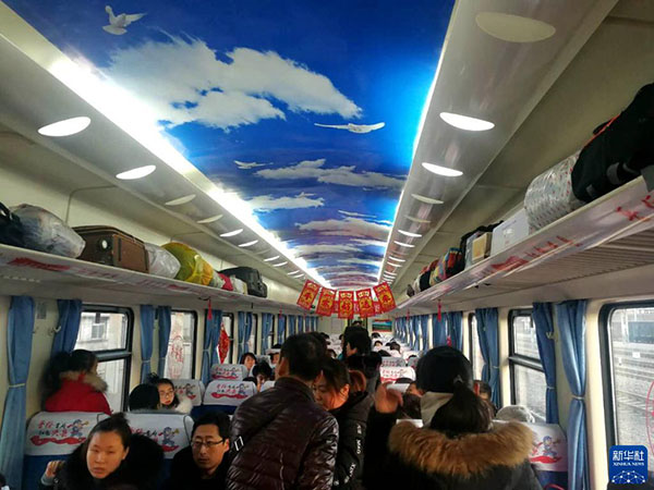 這是2019年1月21日拍攝的“蔡家崖”號(hào)列車(chē)車(chē)廂內(nèi)景。新華社記者 呂夢(mèng)琦 攝