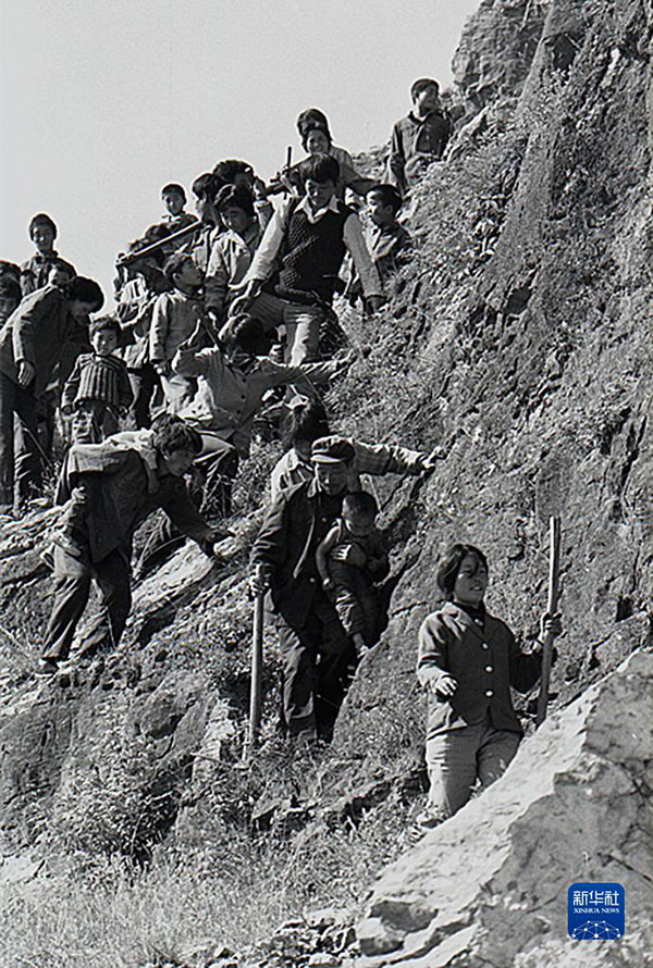 1984年,九間棚村村民在修路(資料照片)。新華社記者 王凱 攝