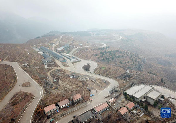 這是在山東省平邑縣地方鎮(zhèn)九間棚村拍攝的道路設(shè)施(2018年12月2日攝,無人機(jī)照片)。新華社記者 王凱 攝