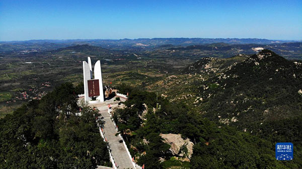 這是位于山東省臨沂市蒙陰縣的孟良崮戰(zhàn)役戰(zhàn)場遺址(2019年8月29日攝,無人機(jī)照片)。新華社記者 王凱 攝
