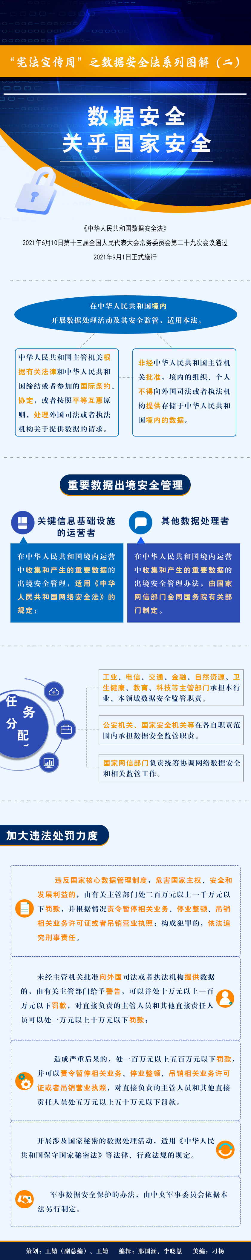 值此第四個“憲法宣傳周”之際,法治網將為您解讀今年9月1日起施行的《中華人民共和國數據安全法》——這部法律的亮點是什么?它是如何支持促進數據安全與發(fā)展的?它又彰顯了哪些數據“溫度”?這一系列問題,都會在法治網《數據安全法圖解(系列)》中找到答案。