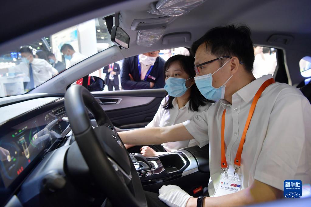 觀眾在第十二屆中國衛(wèi)星導航成就博覽會上參觀體驗基于北斗衛(wèi)星導航系統(tǒng)應用的電動車(5月26日攝)。新華社記者 彭昭之 攝