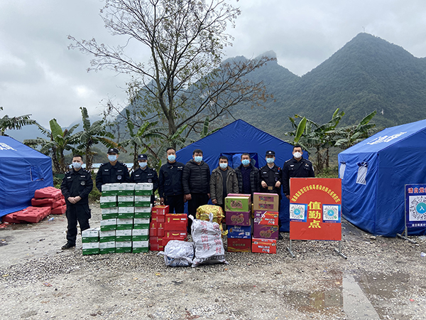 疫情無情人有情,隔離病毒不隔離愛。中石化德保石油公司向德??h公安局捐贈抗疫物資一批;社會熱心人士向執(zhí)勤民輔警捐贈取暖器、暖帖一批;熱心群眾相繼為民輔警送來飲料和水果、熱騰騰的德保豬血腸和糍粑、抗疫愛心物資等;奶茶店為各個執(zhí)勤點的執(zhí)勤民警送來一批甜甜的奶茶;德保水廠緊急解決執(zhí)勤卡點水電問題,并贈送飲水機;天寒地凍,路過的熱心群眾為執(zhí)勤民警送來火盆火炭。直至夜半時分,還有愛心人士為執(zhí)勤人員送來熱騰騰的湯圓、茶葉蛋等。
