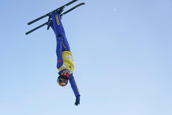 1月12日,徐夢(mèng)桃在美國(guó)帕克城舉行的自由式滑雪世界杯女子空中技巧比賽中。新華社/美聯(lián)
