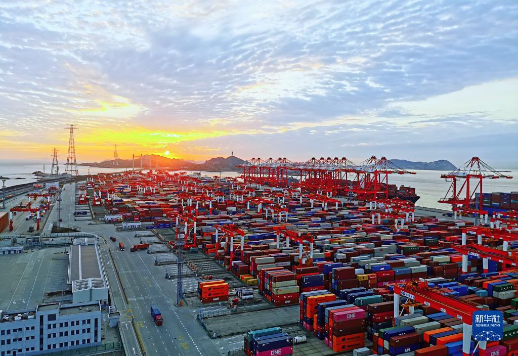 這是1月1日拍攝的洋山港的新年日出。新華社發(fā)